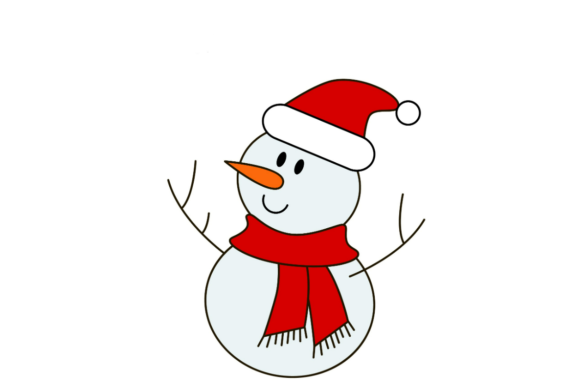 Let’s put more details to the arms of our snowman. Add short curve line to the arm to look more good. You can add more details to your snowman if you have more ideas. But It would be better if you make simple.
