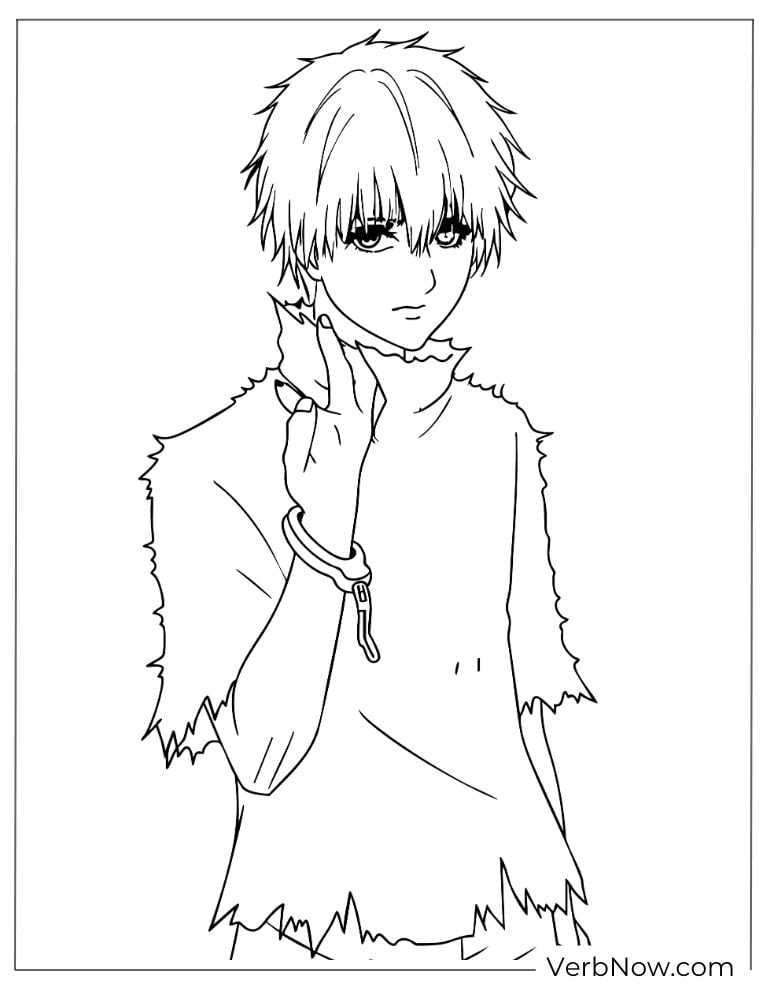 The main hero is Ken Kaneki. There are two versions of him you can color. First, there is the student with black hair so coloring him is easy and fun.